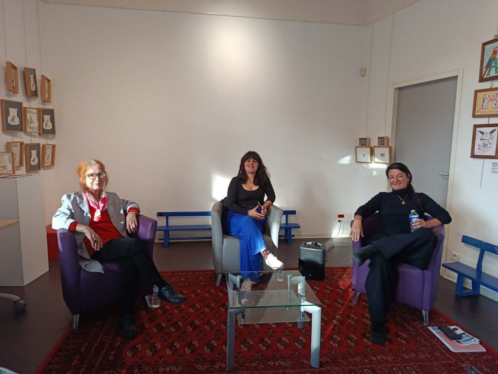 De gauche à droite: Eva-Susanne Ruoff, Sabine Aussenac et Yael Anspach, dans la salle « Stadtfenster » du KAPP1.