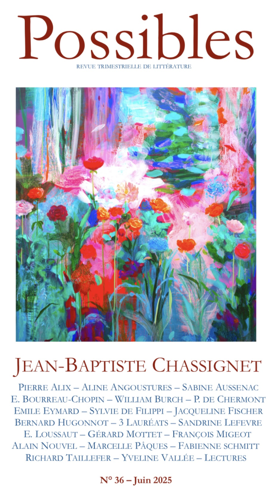 Merci tout d’abord à l’ami Pierre Perrin qui, en juin dernier, a eu la gentillesse d’accueillir ma plume dans sa magnifique revue Possibles! Quel bonheur que de figurer dans le numéro 36 de cette très belle parution, aux côtés de grands noms dont vous trouverez la liste dans le sommaire!