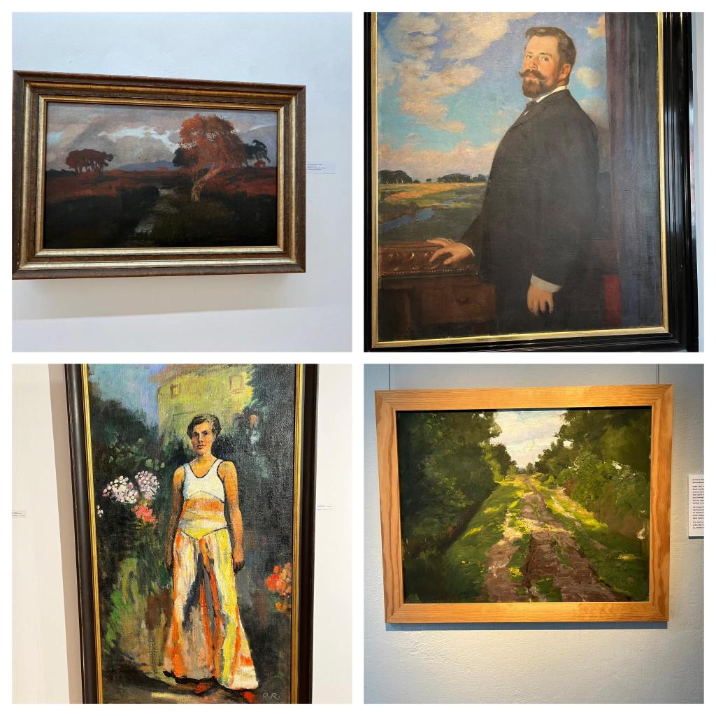Toile de Otto Modersohn (Musée Modersohn à Fischerhude https://www.otto-modersohn-museum.de/); Frtiz Overbeck, posant lui-même devant l’un de ses propres tableaux! Toile de Ottilie Reylaender, Kunststiftung de Lilienthalhttps://www.kunststiftung-lilienthal.de/ ; toile de Hermine Overbeck, musée Overbeck de Vegesack https://overbeck-museum.de/en/. Les trois musées cités ici valent aussi le détour!