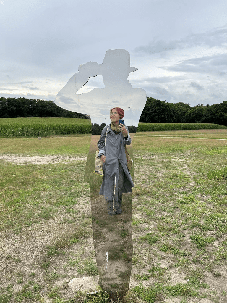 Différentes maisons typiques du village d’artistes et une des nombreuses sculptures (sur le grand pré de la « Marcusheide » https://www.stiftung-worpswede.de/projekte/marcusheide/) émaillant le paysage: https://www.instagram.com/rolanddarjes/