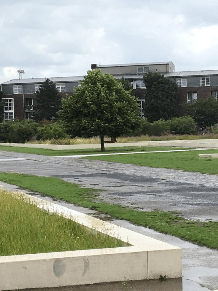 Toute la luminosité du Lehmbruck Museum me semble ainsi faire rempart contre les heures sombres de l’histoire de ma deuxième patrie. À Duisbourg comme dans le reste de l’Allemagne, la population juive avait été décimée. L’architecture du musée trouve d’ailleurs un pendant sororal dans celle de la nouvelle synagogue s’élevant non loin de là, dans un des méandres du port intérieur, elle aussi toute en puits de lumière et au cœur d’un « Jardin du souvenir » : ce parc, perspective mêlant engazonnements et bâtiments, imaginée par l’artiste plasticien israélien Dani Karavan – qui a aussi créé le mémorial du souvenir dédié à Walter Benjamin à Port-Bou et de nombreuses autres œuvres de plein air inspirées par la mémoire des lieux –, croise les vestiges mnésiques dans lesquels le cœur battant de Duisbourg caracole au rythme des blés et d’autres céréales, emblèmes de ce quartier que l’on dénommait le « panier à pain de la Ruhr », ses lignes d’épure blanches comme autant de veines irriguant le présent de toutes les sèves ancestrales, à l’instar de cette rigole construite de conserve avec l’architecte Zvi Hecker, concepteur du centre communautaire juif, ruisselant telle eau neuve en direction de l’ancienne synagogue détruite lors de la Nuit de Cristal… Oui, la ville a su rallumer différents phares-remparts pour se protéger de nouvelles déviances.