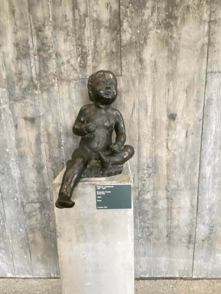 Plus loin, je pars à la rencontre des hommes de ma famille allemande, croisant un Garçonnet assis (Sitzender Knabe) qui m’évoque mon oncle Klaus, que je n’ai jamais connu puisqu’il est mort tout jeune, quelques années après la fin de la guerre, d’un cancer, Klaus dont la joyeuse mémoire a accompagné ma grand-mère jusqu’à la fin de ses jours…