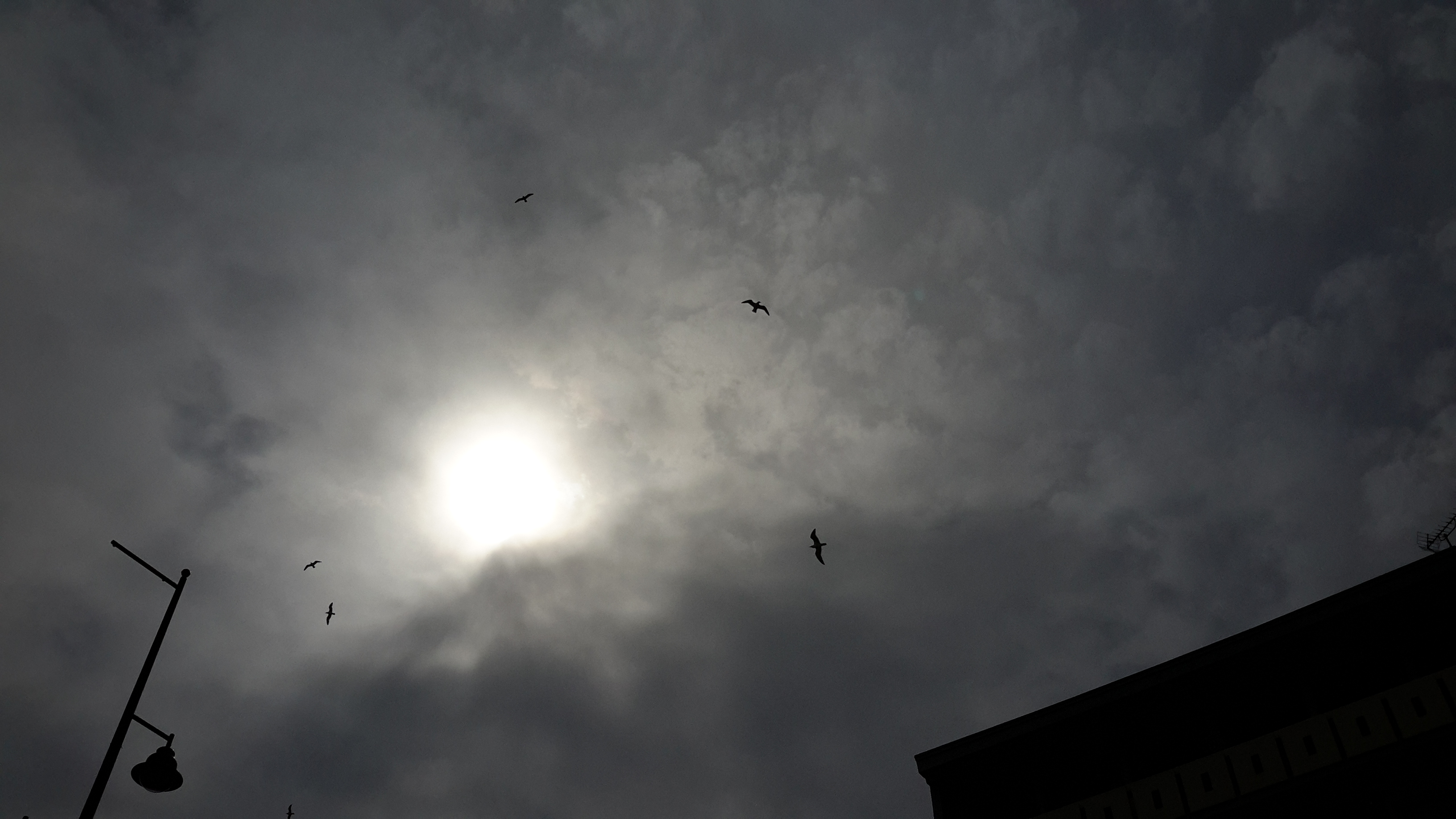 Quand au loin s’éparpillent mille grands oiseaux blancs.