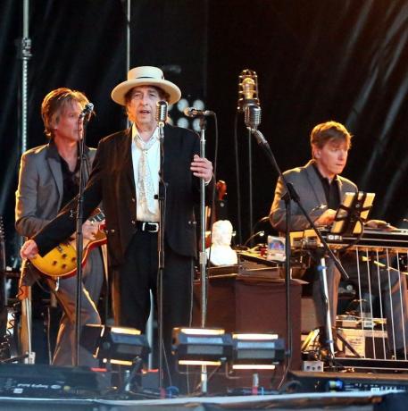 En pantalon pattes d’eph’, dans son costume orange,