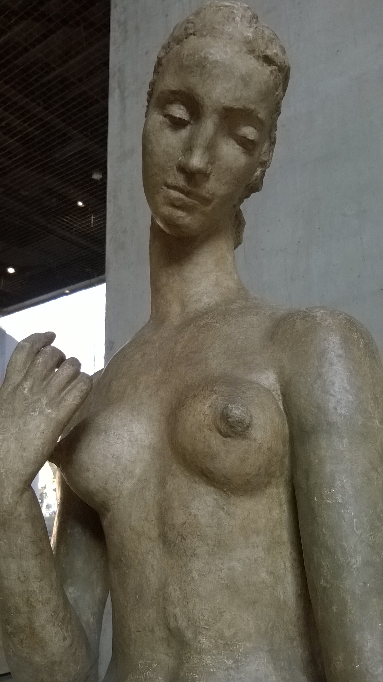 Cette violence de l’exil et des guerres se retrouve aussi dans le morcellement et l’éparpillement des corps et des chairs, en écho aux abracadabrantes représentations de Picasso, comme dans cette Jeune fille à la tête penchée de Roberta Gonzalez de 1939, puisque si la féminité du modèle est bel et bien encore présente au vu de ses deux seins dressés, la position complètement tordue de la tête de ce qui est visiblement un cadavre – rigidité des traits, yeux fixant l’horreur et bouche ouverte glaçant le spectateur – met cependant en exergue Éros et Thanatos au cœur même de l’art.